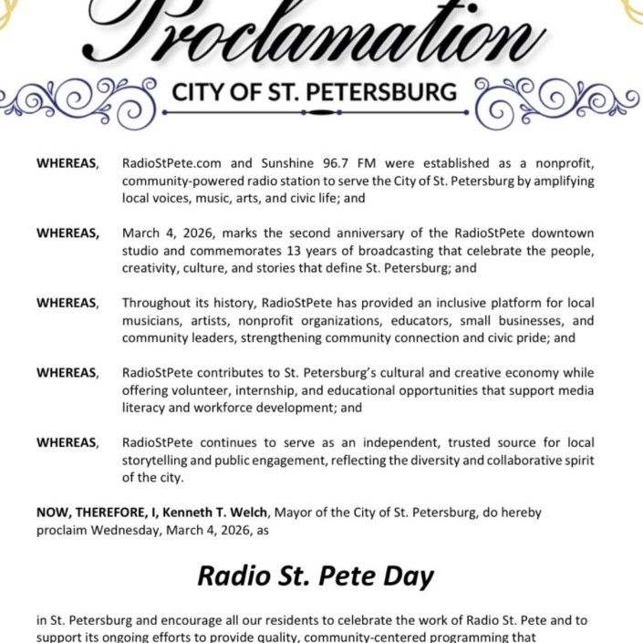 **Hear what's happening now live on RadioStPete.com. **Check out the Program Guide for our full broadcast schedule.