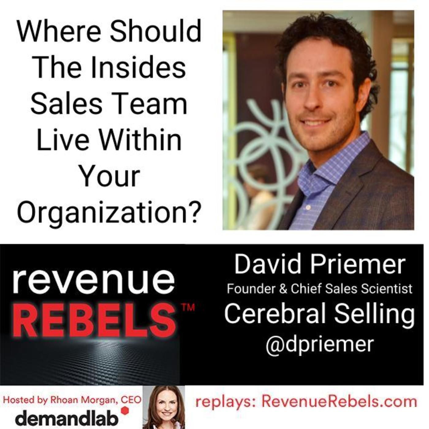 Some argue marketing, some argue sales. No matter where inside sales lives, both marketing and sales play a critical part in this team’s success. Tune in to this month’s episode of Revenue Rebels as Rhoan Morgan sits down with David Priemer, Founder and Chief Sales Scientist at Cerebral Selling to discuss where inside sales fits in and how marketing and sales must bridge the gap to support this...