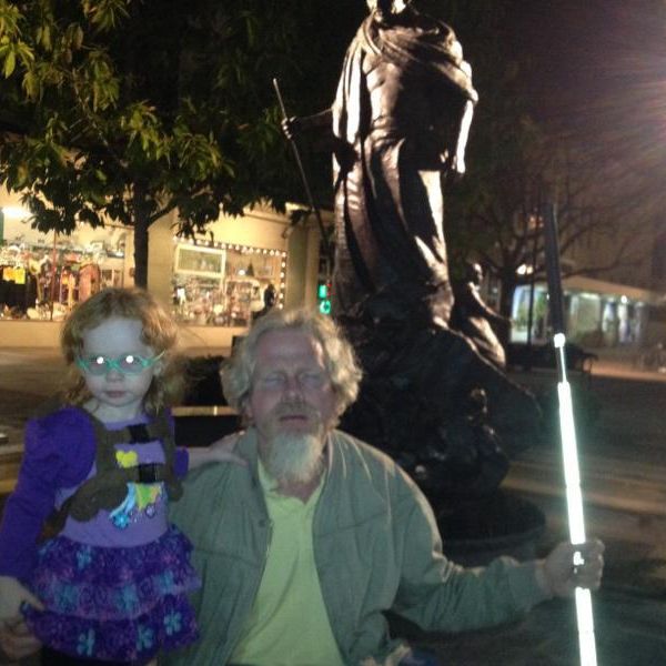 At the statue.