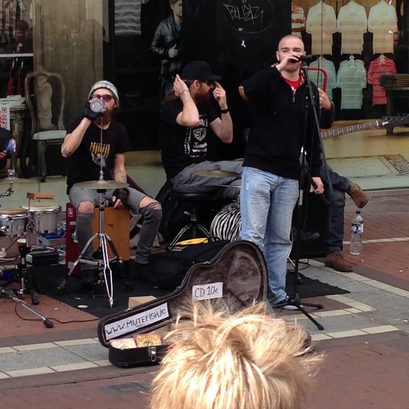 Street music in Grafton St, Dublin. A band called Mutefish