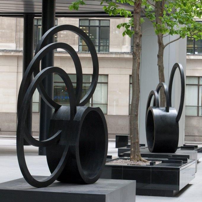 Southern Shade I, Southern Shade IV and Kiss are three art works – two in bronze, one in painted steel - created by sculptor Nigel Hall and now, on display in the Square Mile, as part of Sculpture in the City 2014. Andrew Buckingham from the City of London Corporation, one of the public art exhibition’s partners, talks to Nigel as he watches the installation of his work near the Willis Building on Lime Street.