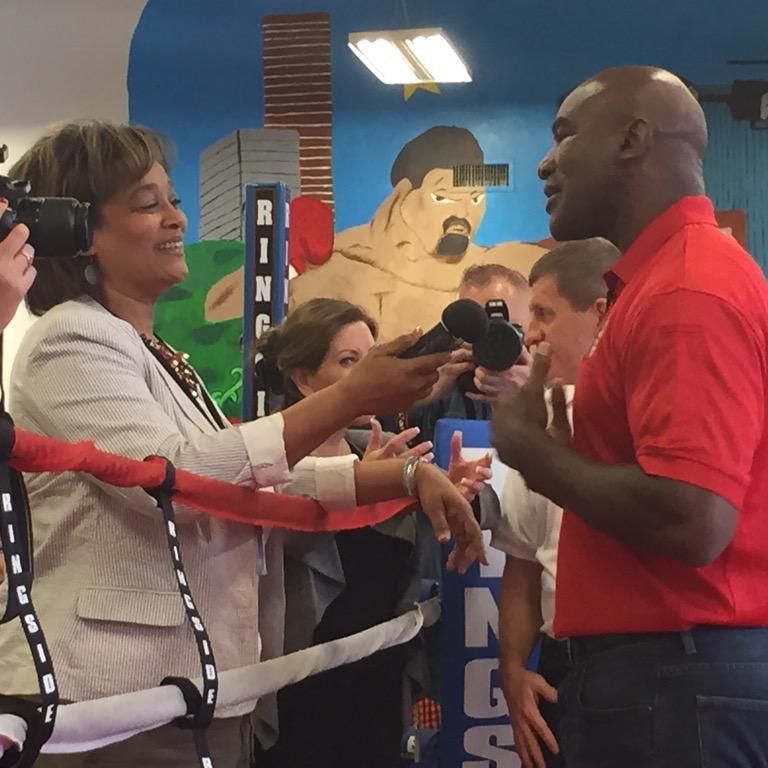 The former governor had high praise for the man he'll be stepping into the ring with. They're fighting to raise money for a charity that performs sight-saving surgeries to people in underdeveloped countries. Here's the sound of the official weigh-in.