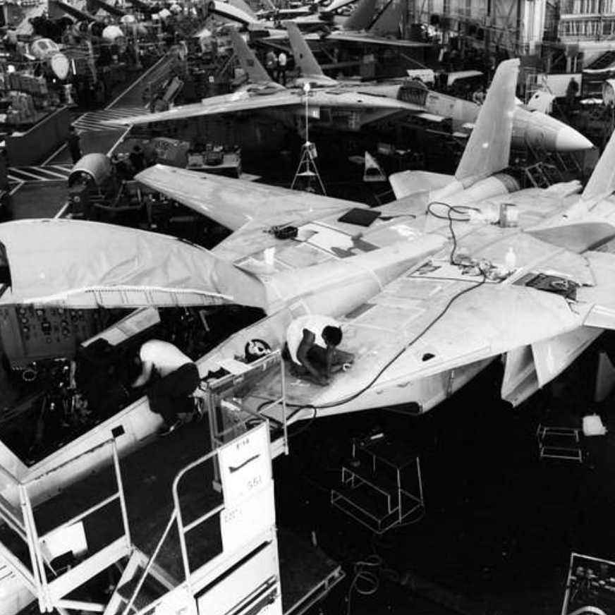 Photo: No known restrictions on publication.1986.PictionID:42766345 - Title:Grumman F-14A production line, Naval Weapons Industrial Reserve Plant, Calverton, 1986 mfr 863853 [GHC via RJF] - Catalog:17_000128 - San Diego Air and Space Museum Archive