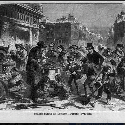 Photo: Street scene in London--winter evening / Thomas Nast.