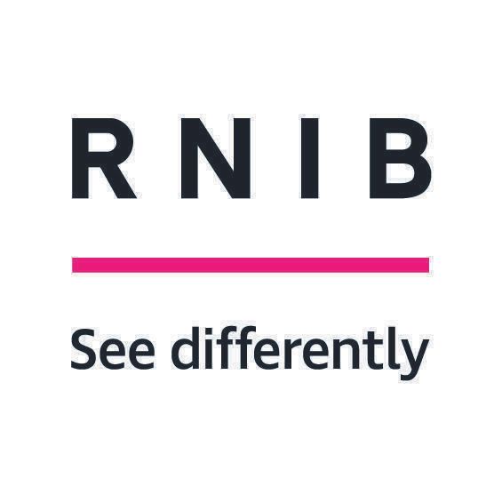 (Image shows RNIB logo. 'RNIB' written in black capital letters over a white background and underlined with a bold pink line, with the words 'See differently' underneath)