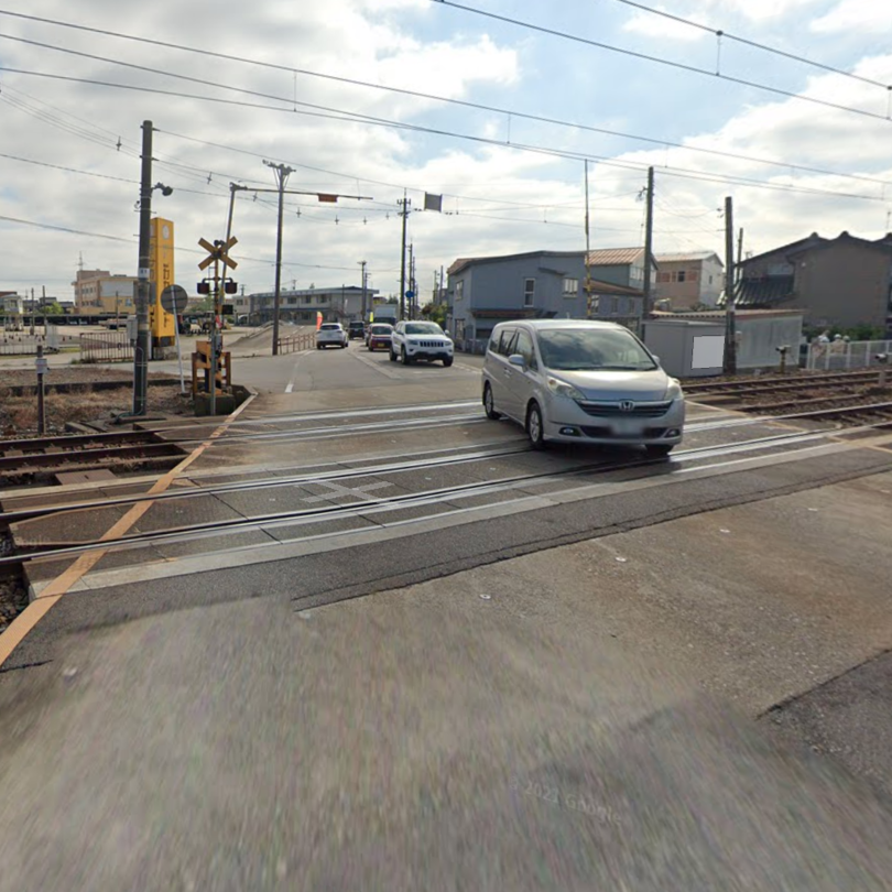 Railroad crossing in Imizu City, Japan reimagined by Cities and Memory.