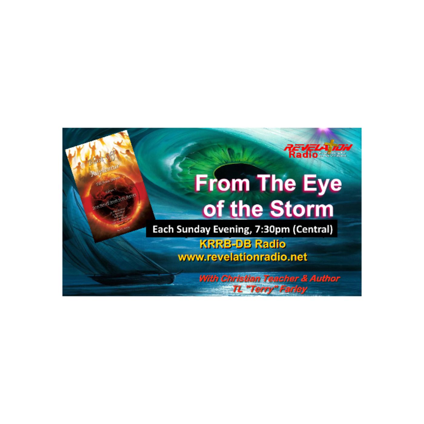 Eye of the Storm is broadcast each Sunday Evening at 7:30pm (Central) on Revelation Radio (KRRB) at www.reveltionradio.net, all Major Podcast Platforms around the Globe, and both Facebook and YouTube.