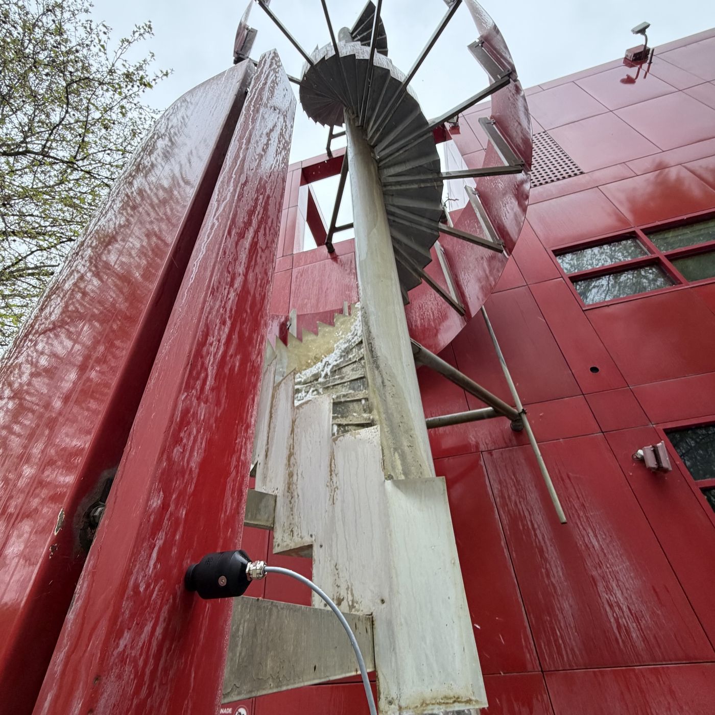 At the same time as recording the spiral staircase waterfall at Folie number six in La Villette, Paris, we also took a vibrational recording of the structure with a Geofon at the same time.